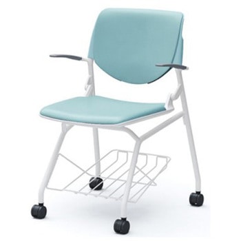 ルナ ネスティング 肘付 背パッド付 グリーンシェル ホワイトフレーム ナイロン双輪オカムラ(岡村製作所)