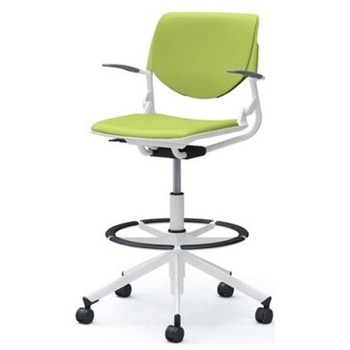 ルナ 5本脚ハイチェア 肘付 背パッド付 グリーンシェル ホワイトフレーム ナイロン双輪オカムラ(岡村製作所)