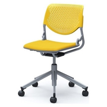 ルナ 5本脚チェア 肘無 背パッド無 イエローシェル シルバーフレーム ナイロン双輪オカムラ(岡村製作所)