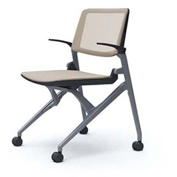 マルカ 4本脚 座メッシュタイプ 肘無 タブレット付 背メッシュ シルバーフレーム ホワイトシェルオカムラ(岡村製作所)