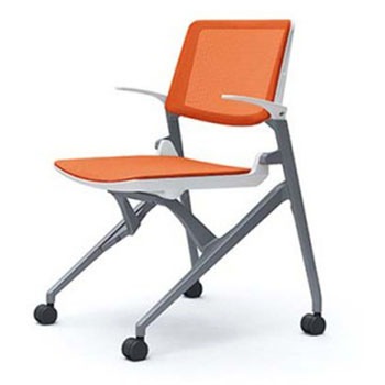 ツァルト クローズ脚 肘無タブレット付 メッシュ ホワイトシェル メッキフレームオカムラ(岡村製作所)