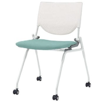 プロスタック ネスティング 肘無 背パッド無 ホワイトシェル ホワイトフレーム ナイロン双輪オカムラ(岡村製作所)