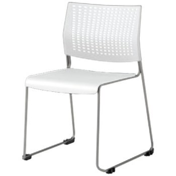 プロスタック ネスティング 肘無 背パッド無 ホワイトシェル シルバーフレーム ナイロン双輪オカムラ(岡村製作所)