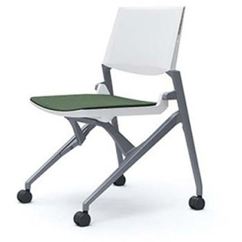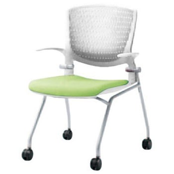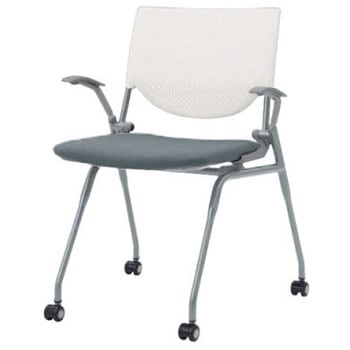 グラータ ネスティング 肘無 タブレット 背パッド付 ホワイトシェル シルバーフレーム ナイロン双輪オカムラ(岡村製作所)