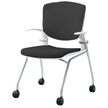 プロスタック ネスティング 肘付 背パッド付 ブラックシェル シルバーフレーム ナイロン双輪オカムラ(岡村製作所)
