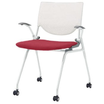 プロスタック ネスティング 肘付 背パッド付 ホワイトシェル ホワイトフレーム ナイロン双輪オカムラ(岡村製作所)