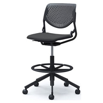 ルナ 5本脚ハイチェア 肘無 背パッド無 ブラックシェル ブラックフレーム ゴムキャスター