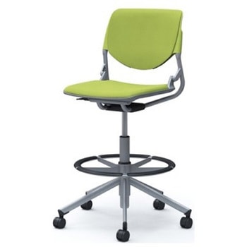ルナ 5本脚ハイチェア 肘無 背パッド付 グリーンシェル シルバーフレーム ナイロン双輪オカムラ(岡村製作所)