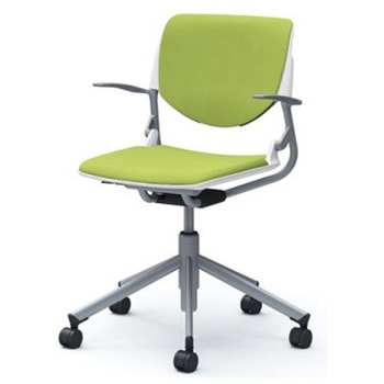 ルナ 5本脚チェア 肘付 背パッド付 ホワイトシェル シルバーフレーム ゴムキャスター
