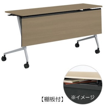 マルカ サイドフォールドテーブル 棚板付 樹脂幕板無 1800×600オカムラ(岡村製作所)