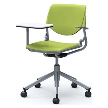ルナ 5本脚チェア 肘付 タブレット付 背パッド付 グリーンシェル シルバーフレーム ナイロン双輪オカムラ(岡村製作所)