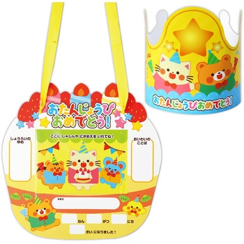 お誕生日かんむりとカードのお得なセット材質:紙。サイズ:かんむり:165×450mm、カード:235×230mm。セット内容:本体×1