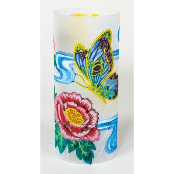 和紙の風合いを活かした美しいランプシェード黒ラシャ紙で制作した切り絵や落ち葉などを、雲龍紙貼りPETシートにのり付けして円筒にしてランプをセットすると、美しい和紙のランプシェードができあがります。 雲龍紙貼りPETシートに絵具で着色することもできます。ボタン電池(LR41)内臓。