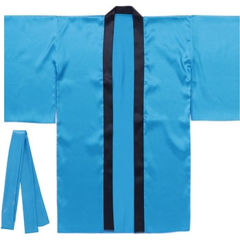 やわらかで通気性の良いサテン生地を使用したロングハッピです。サテン製なので、光沢のあるきれいな色のハッピです。応援や演舞などに最適です。材質:ポリエステル。サイズ:ハッピ:615×1000mm、ハチマキ:1550×45mm。セット内容:本体×1、ハチマキ×1