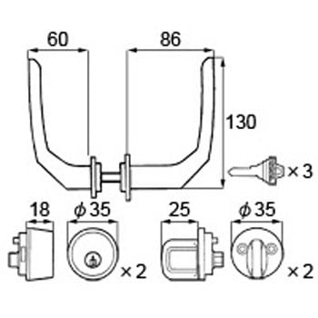 把手セット リバーシブルシリンダー付セキュリティTOSTEM(LIXIL)