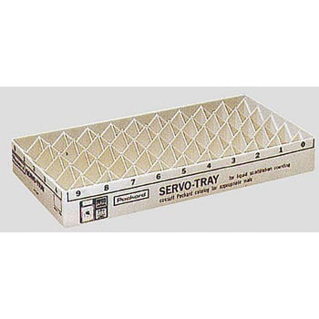 Servo-Tray(サーボトレイ)は、繰り返し使えるバイアルキャリアで、標準サイズバイアル(20mL)が50本収納できます。シンチレーションカクテル耐性で、オートクレーブ可能です。Rack-System(ラックシステム)は、サンプル調整の際のバイアル保管用トレイで、持ち運びに使用します。仕切りを取り替えることで、20mLなら32本(4×8)、6mLバイアルなら50本(5×10)まで収納可能です。シンチレーションカクテル耐性で、除染も容易です。CardBoard Vual Tray(カードボードトレイ)は、仕切りのついたダンボールトレイです。列ごと数字が記入されており、サンプルも判別しやすく組み立ても容易です。