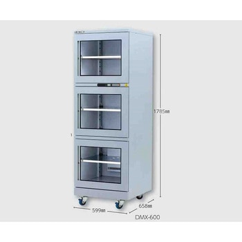 デジタルで湿度設定・制御が可能ですので、対象物に合わせた最適な状況でご使用いただけます。強力な除湿 周囲湿度60%RH・庫内湿度5%RH以下の状態から30秒間扉を開放しても、庫内湿度は1時間以内に5%RH以下に回復します。ESD対応 スチール製、ステンレス製ともにESD 対応していますので、電子部品の保管に適しています。超低湿1%RH 到達湿度は1%RHですので、IPC/JEDEC J-STD-033Bに準拠したICパッケージ・LED、プリント基板・電子部品等の保管に適しています。導電塗装、ステンレス製棚板、本体・扉アース接続済みの静電気対策製品です。扉の数が多く、開閉時の影響を小さくすることができます(各扉鍵付き)。