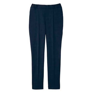 伸縮性のある素材でとても動きやすいパンツ。ウエストがずれにくく、かがんでも下着が見えにくい設計です。くるぶし丈で床につかず衛生的です。ひざダーツと伸縮性のある素材で、つっぱり感ゼロです。裾上げ済み。