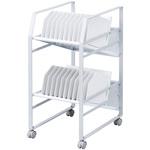 タブレットをファイルのように収納できるワゴンです。10台×2段で20台の収納が可能です。設置する棚板は斜めと水平設置が初期設定で選択できます。背面部にはタップや多ポートハブが設置できるスペースがあります。