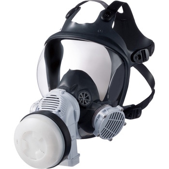 呼吸連動形シンクロ。呼吸が楽!呼吸連動形なので、呼吸に合わせて清浄空気を供給します。防じん・防毒マスクより安全性が高い!面体内圧を陽圧(正圧)に保持するため、安全性が高いです。傷つきにくく、曇りにくいアイピース。(外側:表面硬化処理、内側:防曇処理)。拡声器付きで、マスクを付けたままでも、指示を確実に伝達し、安全性を高めます。フィルタ・吸収缶交換時期とバッテリー残存量が一目でわかる、LED表示付。(吸収缶の交換時期は、破過時間も参照してください。)。ファンユニットを外して、面体が水洗いできます。