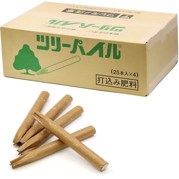 ツリーパイルは樹木に有効な化学肥料を紙管に溶解充填し簡単に深層まで施肥できるように開発された『樹木専用打ち込み肥料』です。