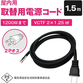 室内用電源ケーブル 12A 2芯 VCTF型(両端プラグ・ジャックなし)1.5mブロードウォッチ