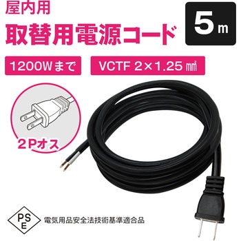 室内用電源ケーブル 12A 2芯 VCTFK型(片側プラグ付き)5mブロードウォッチ