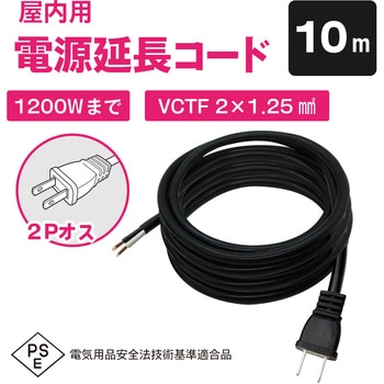 室内用電源ケーブル 12A 2芯 VCTF型(両端プラグ・ジャックなし)10mブロードウォッチ