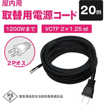 室内用電源ケーブル 12A 2芯 VCTF型(両端プラグ・ジャックなし)20mブロードウォッチ