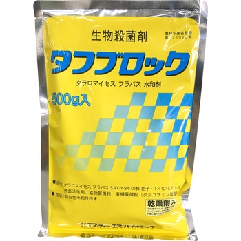 適合病害虫褐条病、ばか苗病、いもち病、苗立枯細菌病、もみ枯細菌病、苗立枯細菌病(フザリウム菌)(リゾープス菌)(トリコデルマ菌)有効成分タラロマイセス フラバス SAY-Y-94-01株胞子 1×108cfu/g性状類白色水和性粉末適合作物稲、稲(箱育苗)農林水産省登録第(号)21920毒劇区分普通物