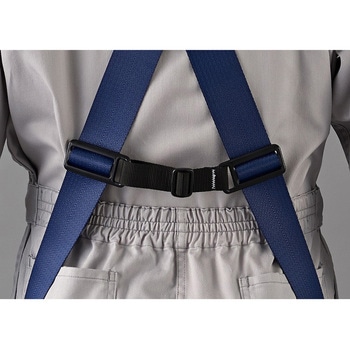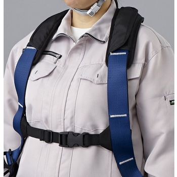 フリーショルダー:方の動きに追随して肩ベルトがスライドするので腕を挙げるなどの動作でも肩がつっぱりにくく快適に作業が可能となります。
