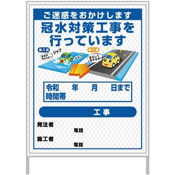 【レンタル】工事看板 イラスト(国交省仕様)ガルバニウム プリズム反射型 1100x1400 水路工事6グリーンクロス