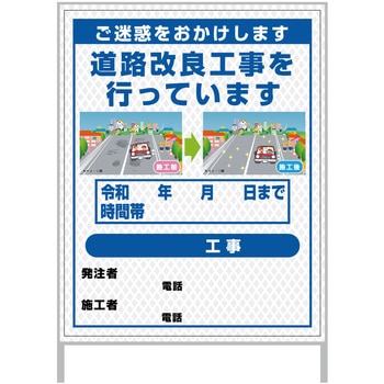 【レンタル】工事看板 イラスト(国交省仕様)ガルバニウム プリズム反射型 1100x1400 道路工事6グリーンクロス