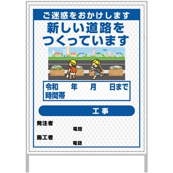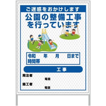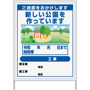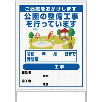 【レンタル】工事看板 イラスト(国交省仕様)ガルバニウム プリズム反射型 1100x1400 公園整備1グリーンクロス