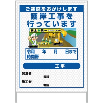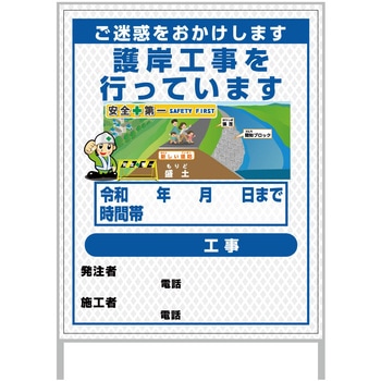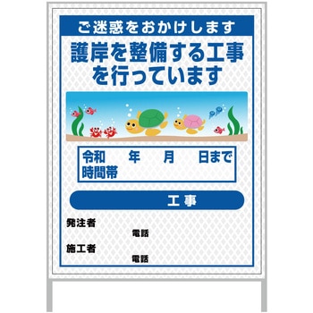 【レンタル】工事看板 イラスト(国交省仕様)ガルバニウム プリズム反射型 1100x1400 護岸港湾工事5グリーンクロス