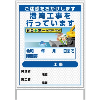 【レンタル】工事看板 イラスト(国交省仕様)ガルバニウム プリズム反射型 1100x1400 護岸港湾工事1グリーンクロス