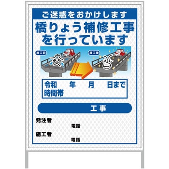 【レンタル】工事看板 イラスト(国交省仕様)ガルバニウム プリズム反射型 1100x1400 橋梁工事4グリーンクロス
