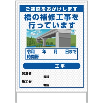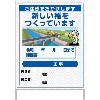 【レンタル】工事看板 イラスト(国交省仕様)ガルバニウム プリズム反射型 1100x1400 橋梁工事1グリーンクロス