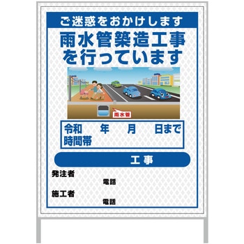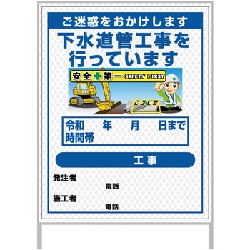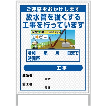 【レンタル】工事看板 イラスト(国交省仕様)ガルバニウム プリズム反射型 1100x1400 水道管工事1グリーンクロス