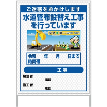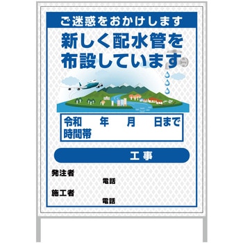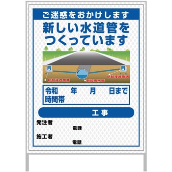 【レンタル】工事看板 イラスト(国交省仕様)ガルバニウム プリズム反射型 1100x1400 水道管工事3グリーンクロス