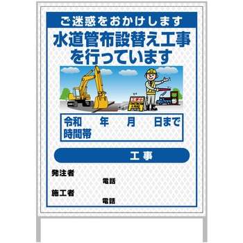 【レンタル】工事看板 イラスト(国交省仕様)ガルバニウム プリズム反射型 1100x1400 水道管工事4グリーンクロス