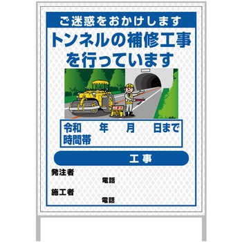 【レンタル】工事看板 イラスト(国交省仕様)ガルバニウム プリズム反射型 1100x1400 トンネル工事3グリーンクロス