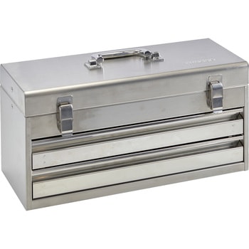 オールステンレス製(SUS304)の引き出し式ツールチェストです。キーロック式で引き出しにもロックがかかるため、安心して保管することができます。上蓋を閉めると引出しにロックがかかり、移動時に引出しを飛び出るのを防止できます。いたずら防止や防犯のため、南京錠(別売)を取り付けできる専用の穴が設けられています。