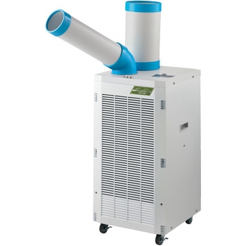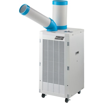用途移動式エアコンとして。熱中症対策に。小型 スポットクーラー 冷風機 業務用 エアコン 床置型 工事不要付属品リモコン(単4電池2本使用)×1、排熱ダクト(約0.3mから1.2m伸縮タイプ)×1、排熱ダクト用本体側継手×1、窓パネル×1、窓パネル用キャップ×1、ドレンホース(ゴムパッキン付き)×1質量(kg)22色ホワイト電源AC100V(50/60Hz)定格出力(kW)0.75電源コード(m)約1.8冷房能力(50/60Hz)(kW)2.0/2.3消費電力(W)(50/60Hz)750/770使用環境温度(℃)約16から35寸法(幅W×奥行D×高さH)(cm)37×34.5×70.5電流(A)(50/60Hz)8.4/8.0冷媒R410A圧縮機全閉型ロータリー冷媒封入量(g)410使用環境湿度(%)30から90騒音値(dB)(50/60Hz)約56/57除湿能力(L/日)23/26 (※室温27度、湿度60%の室内で1日運転した際の能力値になります)