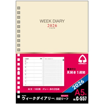 リングバインダーのリフィルとして使える見開き1週間ダイアリーです