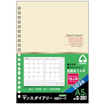 リングバインダーのリフィルとして使えるブロックタイプの見開き1ヶ月ダイアリーです