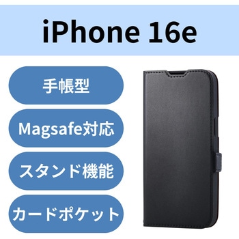 iPhone 16e ケース レザー 手帳型 マグネット 衝撃吸収 磁力吸着ワイヤレス充電対応 スタンド機能付エレコム