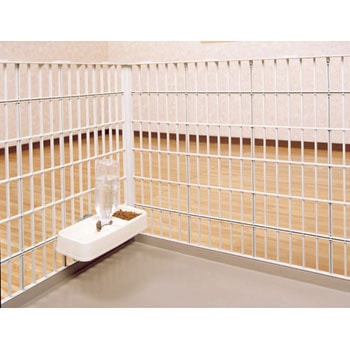 給水皿とエサ皿が一つになった便利な食器です。室内用サークル・ケージに接続して使用できるハンガー付です。市販の500mlペットボトル(外径28mm)を使用します。