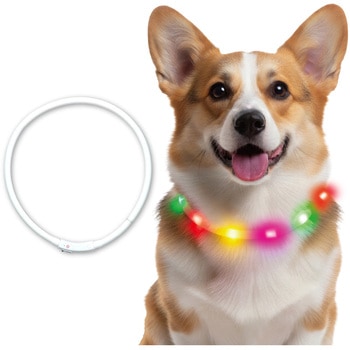 夜間のお散歩も安心!長さ調整可能な充電式のリングライト!夜間のお散歩時にペットの視認性を高めるリングライトです。レインボーカラーでカラフルに点滅し、暗い道でもペットの存在をしっかりと周囲に知らせることができます。車や自転車からも見えやすく、夜道でのお散歩をより安心して楽しめます。柔らかいシリコン製のリングはハサミで簡単にカットでき、ペットの首のサイズに合わせて調整可能です。小型犬から大型犬、猫まで幅広く使用できます。軽くてやわらかな素材なので、首にやさしくフィットし、ペットへの負担も少なくなっています。約30分の充電で長時間使用できるため、毎日のお散歩にも便利です。また、点灯や点滅のモードを切り替えられるので、使用シーンや周囲の明るさに応じた使い方ができます。夜のお散歩を安全で快適な時間にする、実用性とデザイン性を兼ね備えたペット用リングライトです。