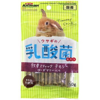 おいしく、楽しく、デリケートなウサギのお腹の健康維持をサポートする「ウサギの乳酸菌おやつ」シリーズ。食物繊維が豊富なイネ科の牧草「チモシー」を使用したスティックタイプのおやつに、爽やかな香りのハーブ「ローズマリー」を加えました。手から与えやすい長めのサイズ感で、ウサギちゃんとの触れ合いもたっぷり楽しめます。
